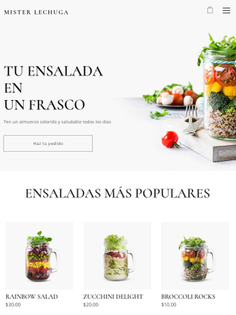 ¡Lanza tu negocio de comida a domicilio con esta atractiva plantilla! Vende deliciosas ensaladas y comida saludable con facilidad. Sólo tienes que añadir algunas imágenes, contar qué hace que tus productos sean tan especiales y hordas de clientes hambrientos estarán haciendo pedidos antes de que termines de decir lechuga.